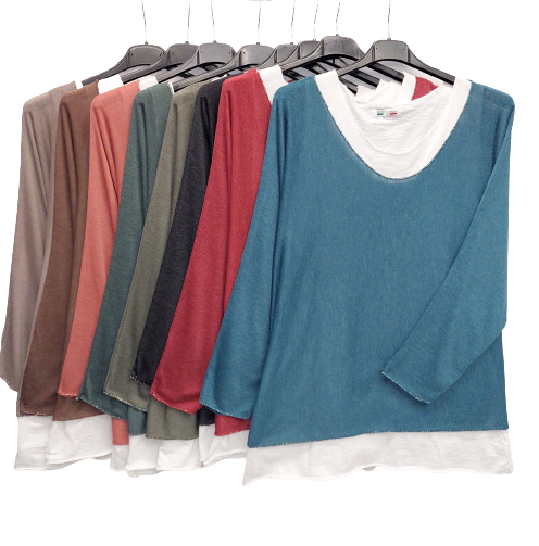 Εσωτερικό βαμβακερό τοπ και εξωτερική μπλούζα με τρουακάρ μανίκι, στο ύφασμα της βισκόζης.