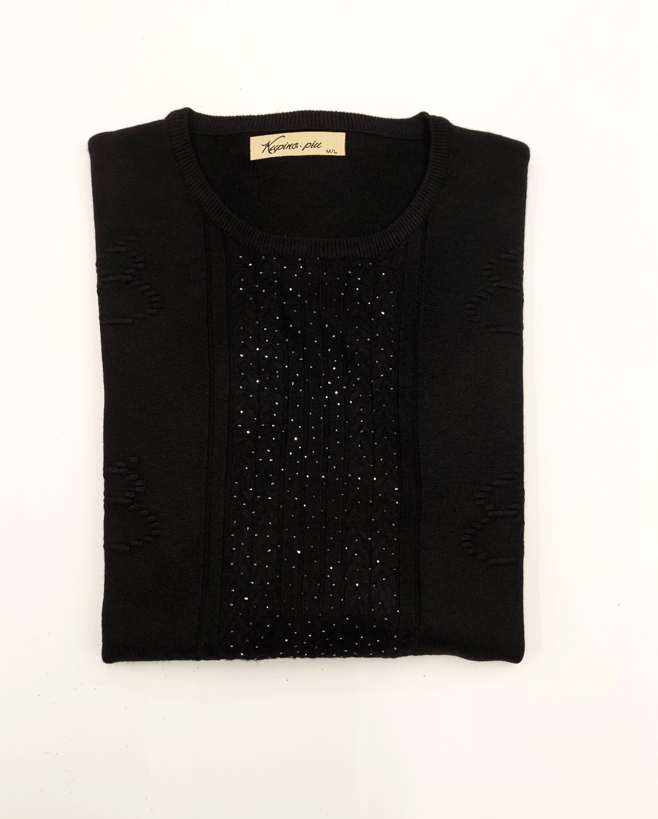 Μπλούζα με διακριτικά στρας και ανάγλυφο σχέδιο με πλεξούδες, στα 17 ευρώ.